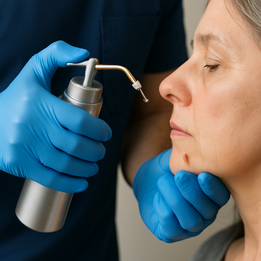 Consiste en aplicar frío extremo de forma muy precisa sobre la verruga, destruyendo el tejido afectado por el VPH sin dañar la piel sana, lo que permite una recuperación estética rápida y segura.