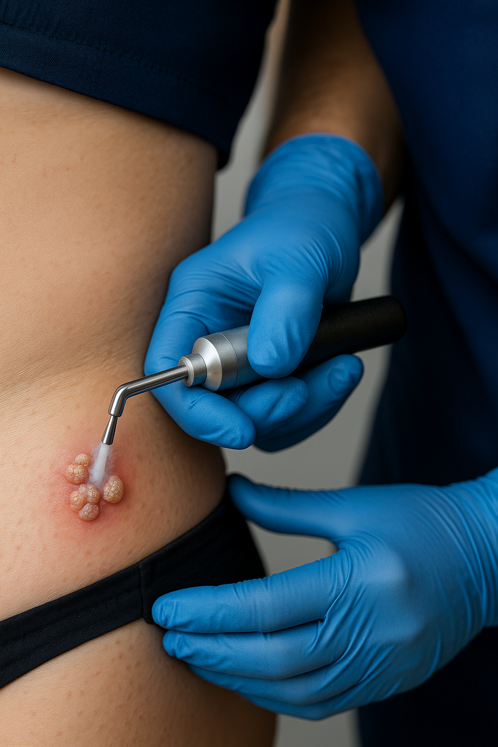 Es un procedimiento rápido, seguro y eficaz, especialmente adecuado para la zona genital debido a su precisión y buena tolerancia.